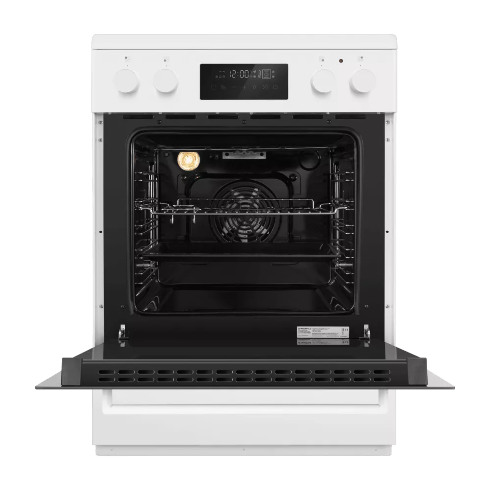 Электрическая стеклокерамическая плита MAUNFELD MEC611CW09TD — практичное решение для тех, кто хочет получить полноценную духовку и удобную стеклокерамическую поверхность в едином корпусе. Модель сочетает лаконичный белый дизайн и продуманную эргономику: понятные переключатели, дисплей и электронный таймер помогают легко контролировать процесс готовки.