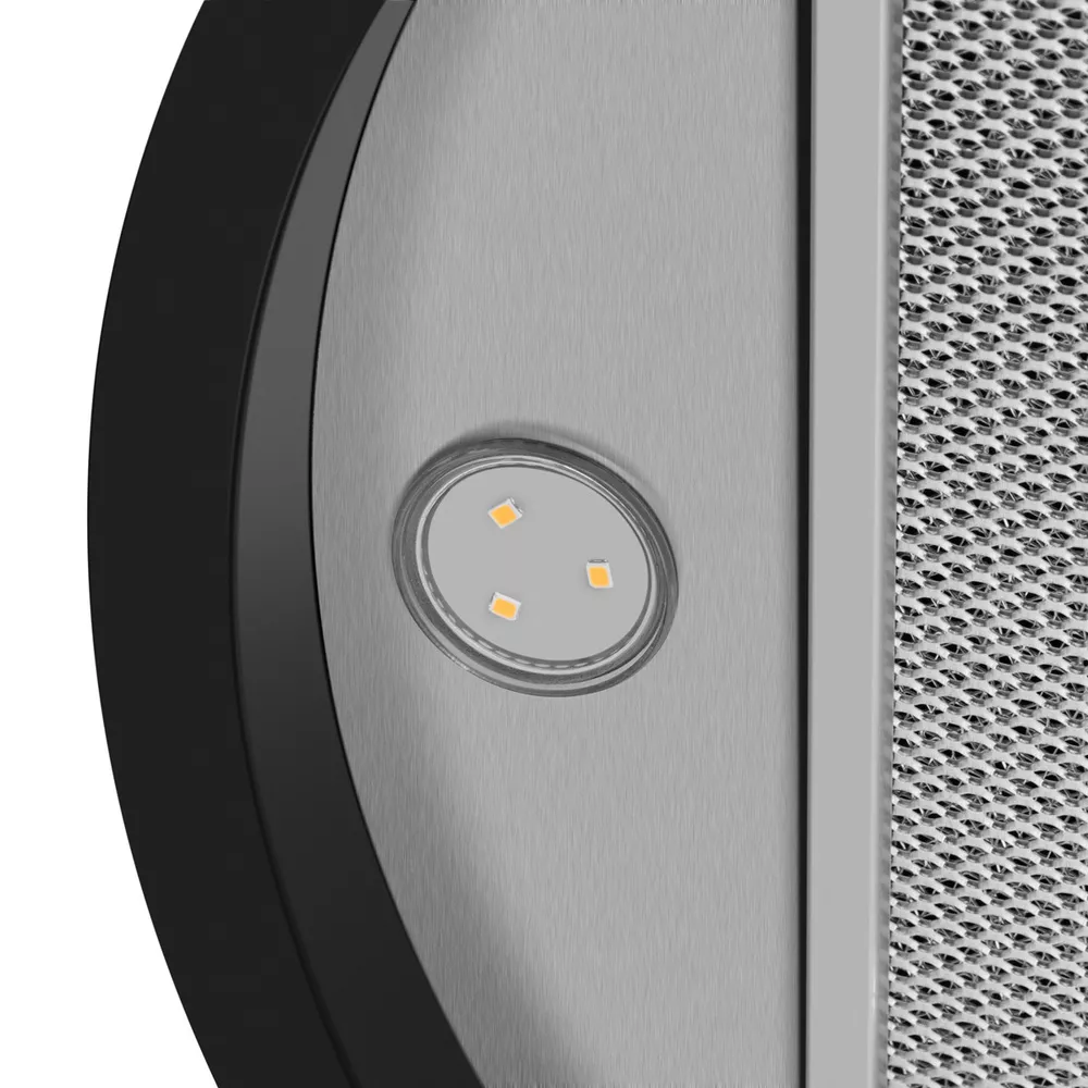 За чистоту воздуха отвечает максимальная производительность: 1000 м³/ч, которая быстро устраняет запахи и пары даже на большой кухне до 40 м². Периметральный принцип втягивания усиливает эффективность, а продуманная конструкция помогает поддерживать комфортный микроклимат.