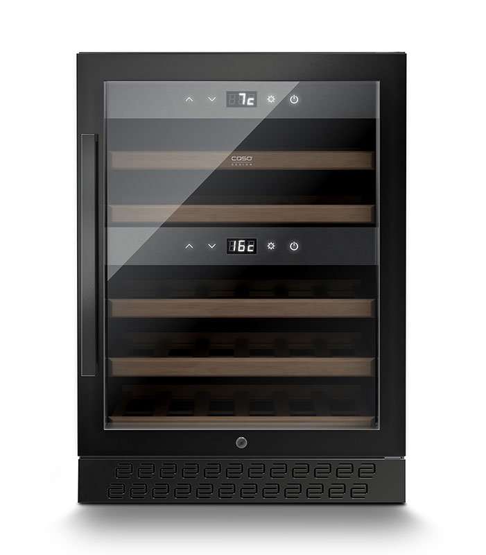 Двухзонный компрессорный винный холодильник CASO WineChef Pro 40 black, предназначенный для хранения вина в температурном диапазоне от 5 до 20°C. Верхняя зона предназначена для хранения белых и игристых вин (6-10°C), нижняя – для красных (10-20°C). Зоны работают автономно, каждая оборудована собственным контуром охлаждения и панелью управления. Компрессор CASO WineChef Pro 40 отличается низкой вибрацией и малым энергопотреблением (всего 142 кВтч в год). В случае, когда обе зоны - верхняя и нижняя - работают, температура верхней зоны должна быть ниже или равна температуре нижней зоны.