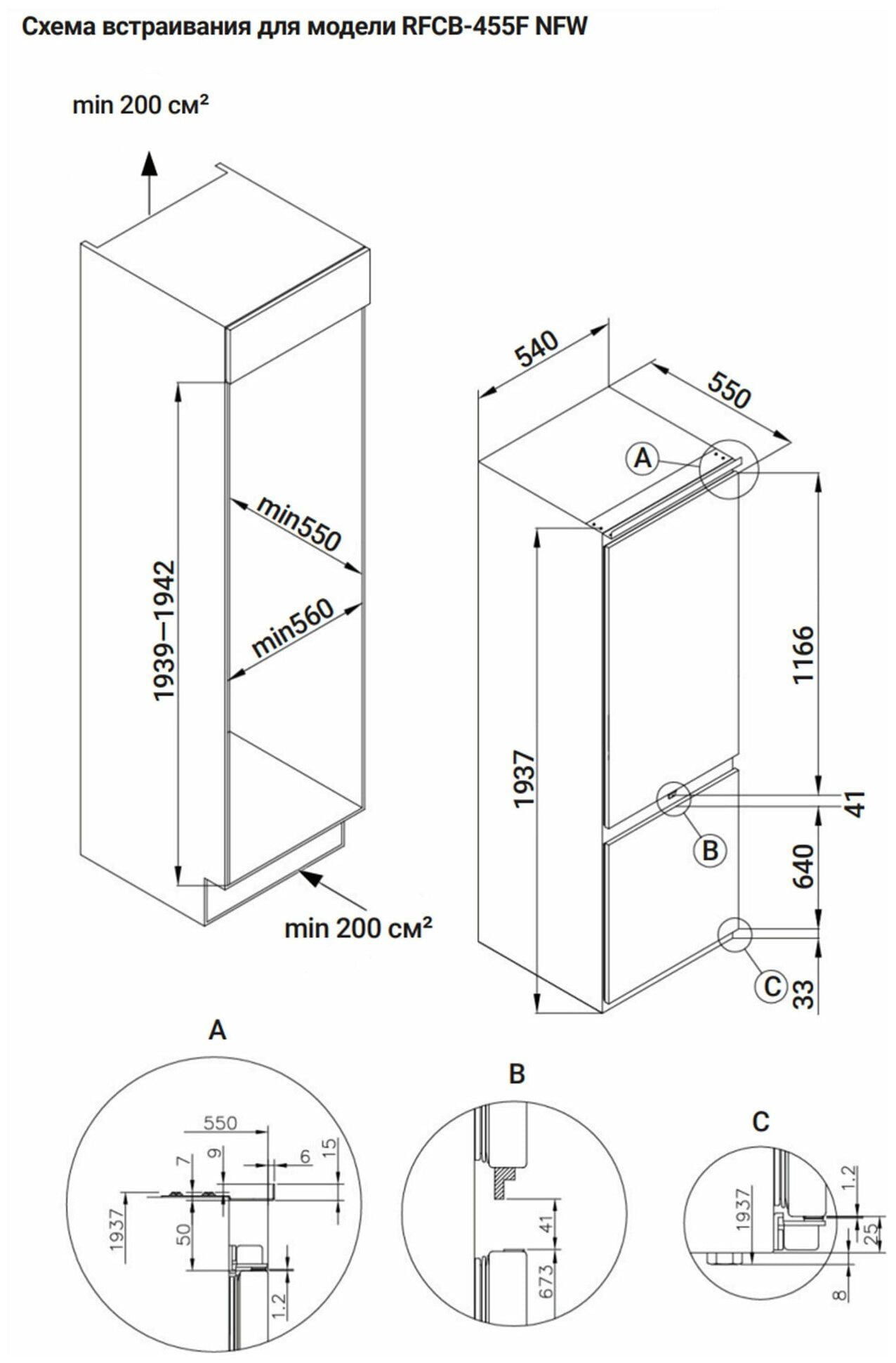 Холодильник HIBERG RFCB-455 F NFW встраиваемого типа, поддерживает жесткое крепление фасада.